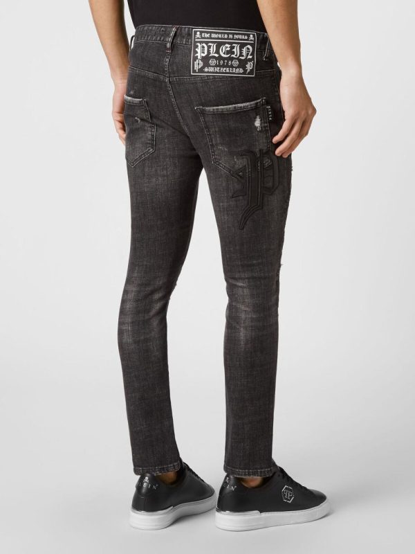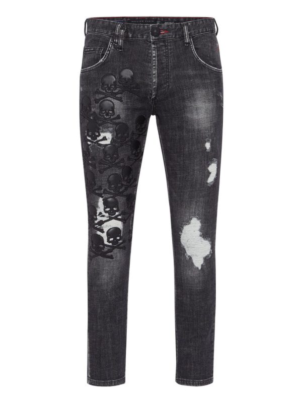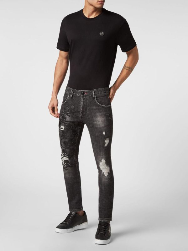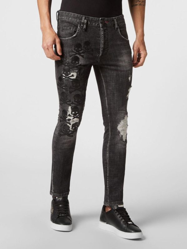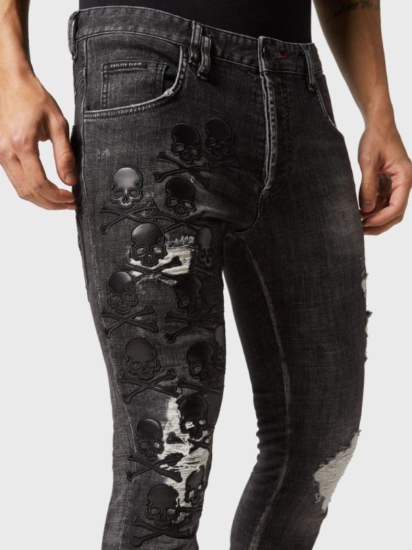 Philipp Plein Denim | Herren Denim Trousers Skinny Fit Skull & Bones Full Metal
