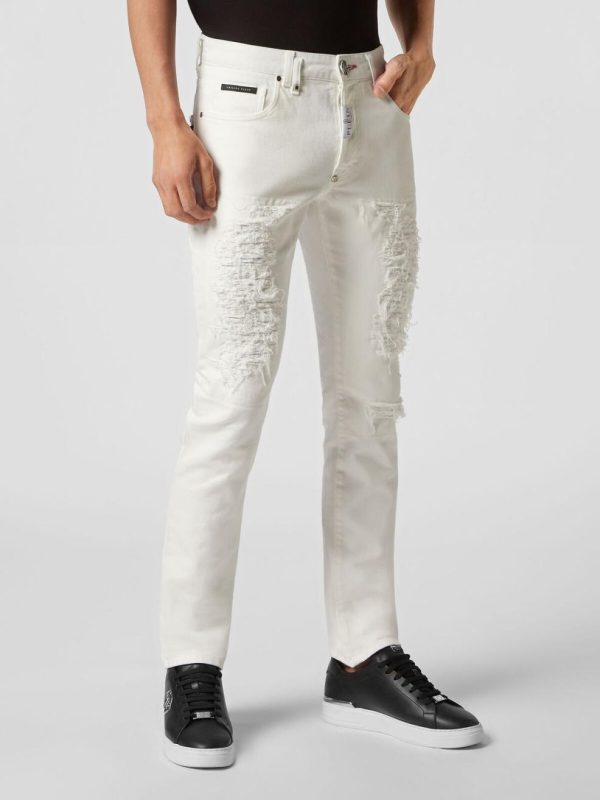 Philipp Plein Denim | Herren Denim Trousers Super Straight Cut Fit Summer Snow