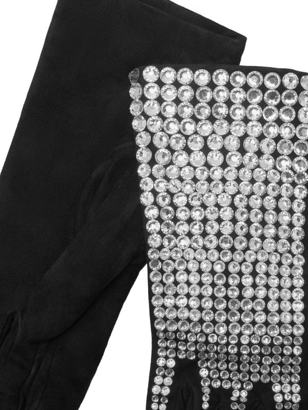 Philipp Plein Handschuhe | Damen Suede Mid-Gloves Crystal Black