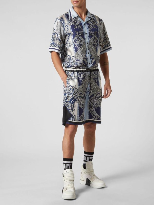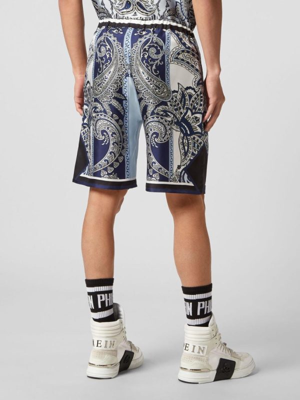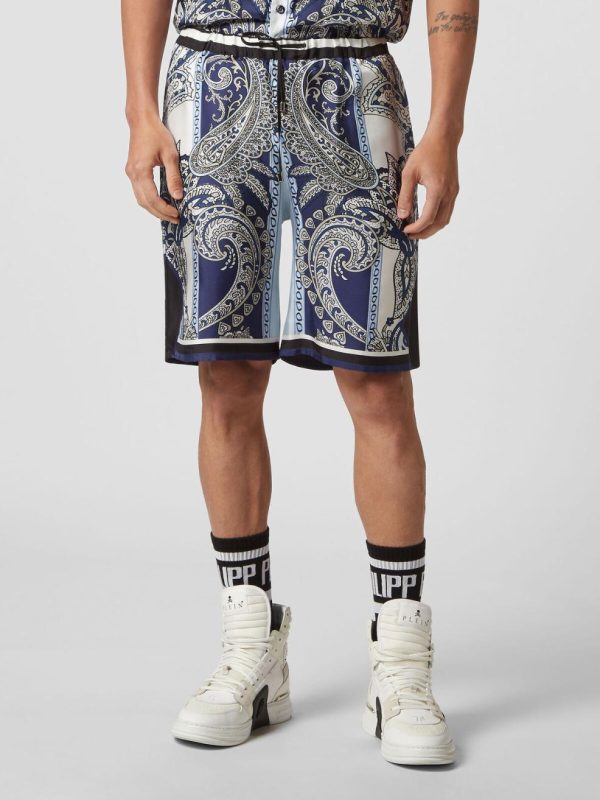 Philipp Plein Hosen & Shorts | Herren Silk Shorts Paisley Foulard Light Blue