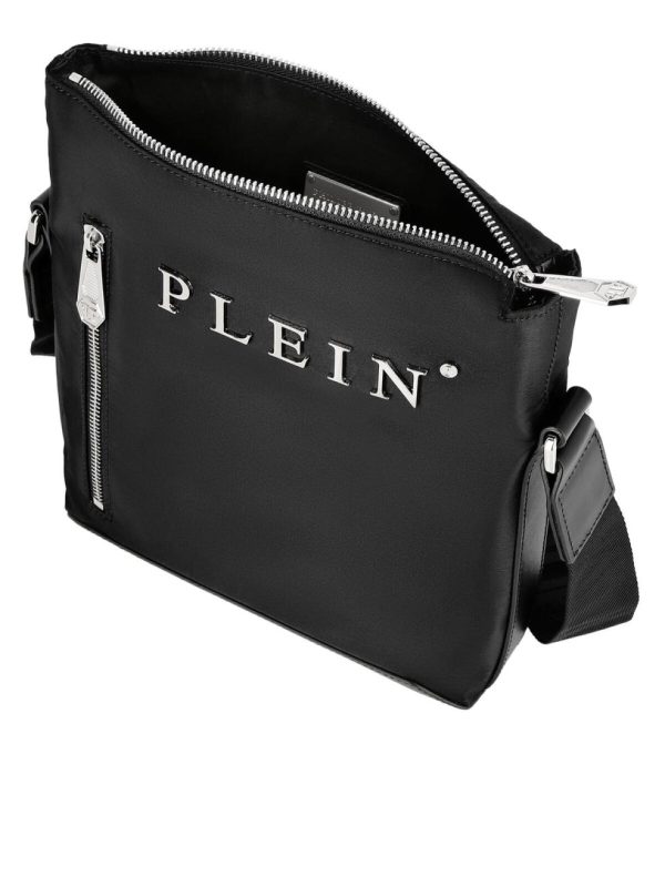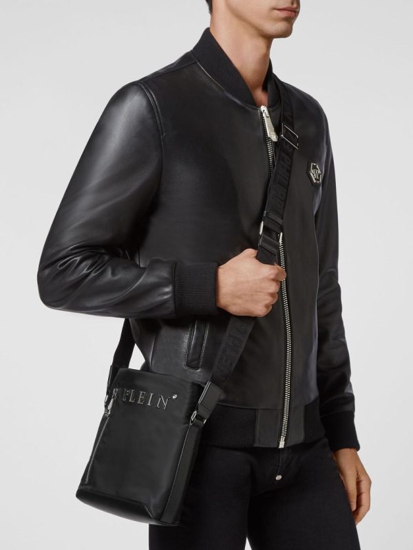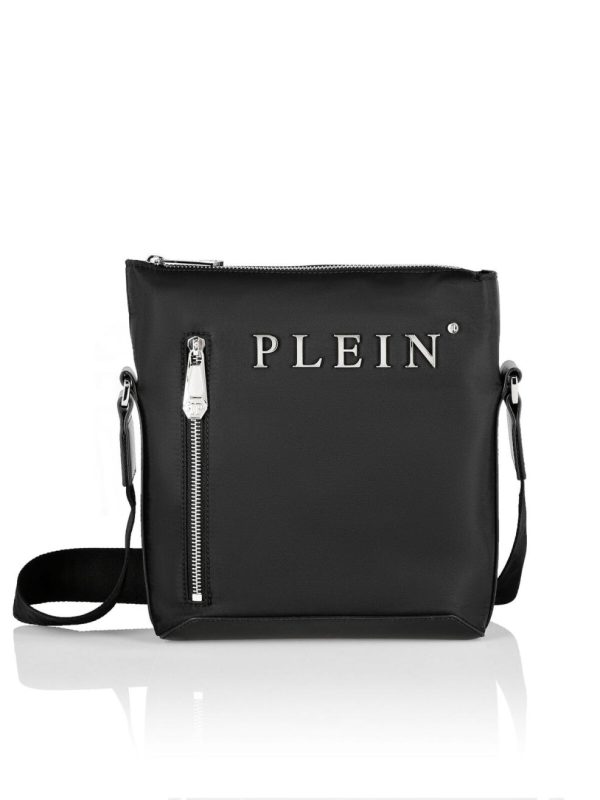Umhängetasche aus Leder und Nylon, verziert mit dem auf der Vorderseite angebrachten Schriftzug der Marke. Reißverschluss und Außentasche mit Reißverschluss. Das Logo ist jacquardgewebt auf dem verstellbaren Nylonriemen. Innenfutter und Taschen. Maße: H. 24 cm, B. 20 cm, T. 10 cm.