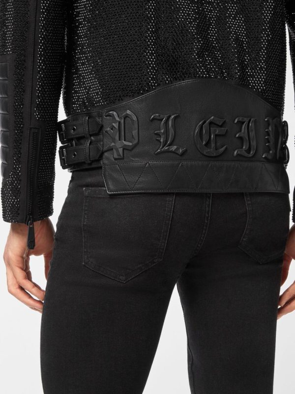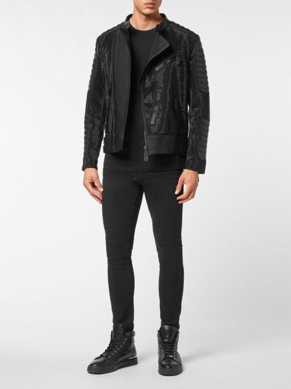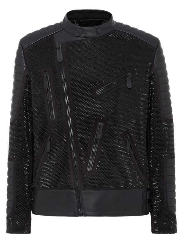 Philipp Plein Oberbekleidung & Mäntel | Herren Leather Disco Biker Jacket Crystals Black