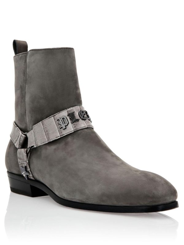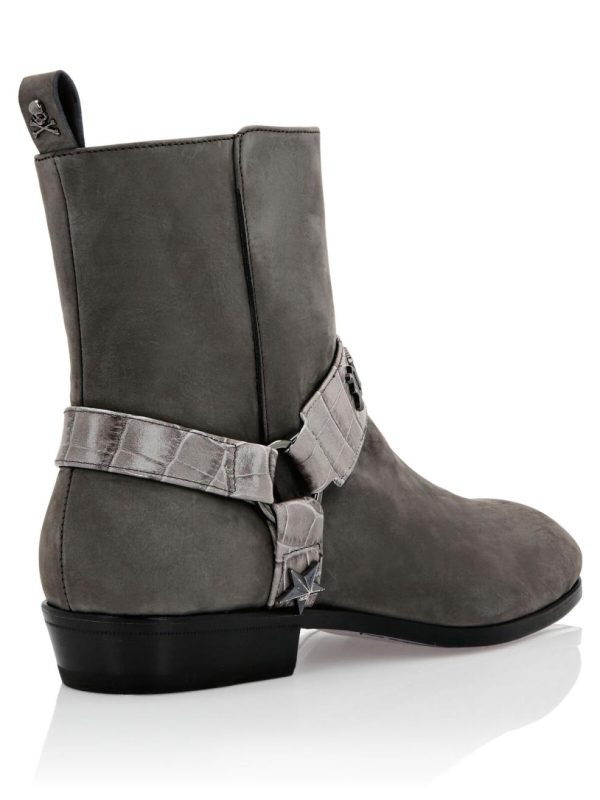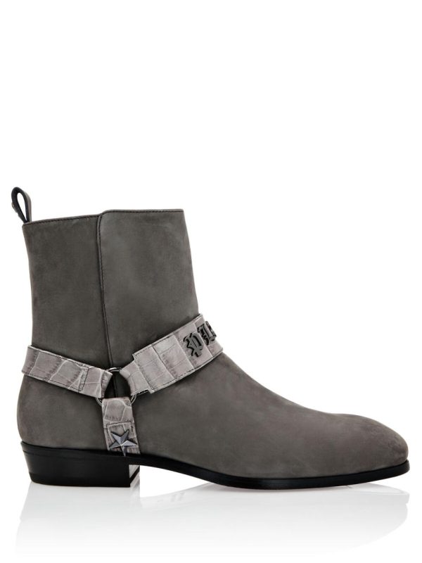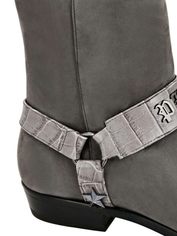 Verleihen Sie Ihrem Stil einen Hauch von Glamour mit dieser Stiefelette aus Nubuk mit Lederdetails. Überzeugen Sie sich von der besonderen Verarbeitung und erfahren Sie mehr.