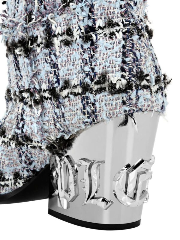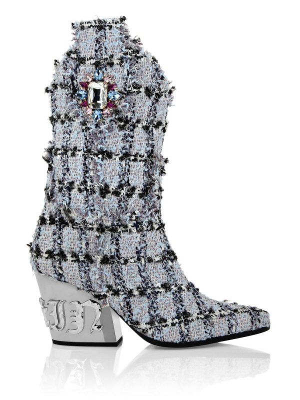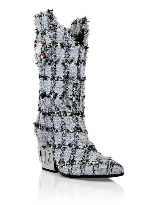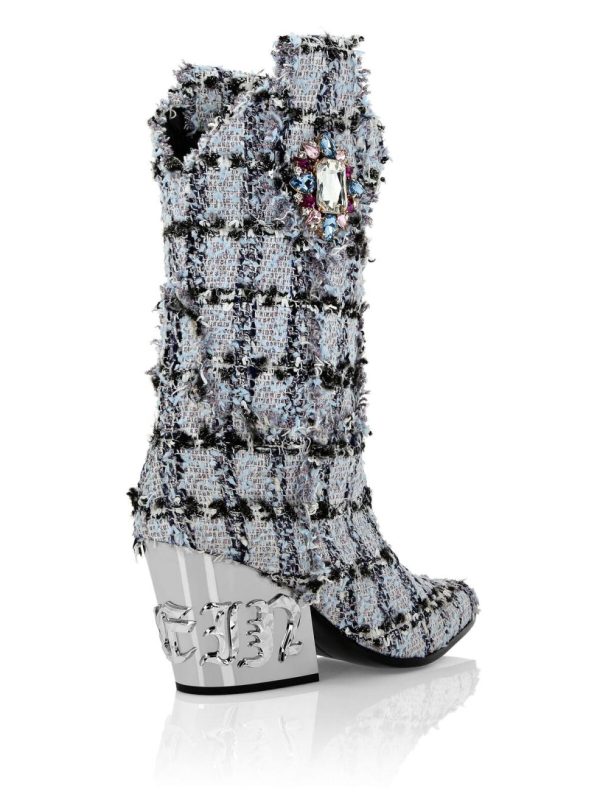 ● Obermaterial aus ausgefranstem Bouclé mit schmuckvollen Broschen