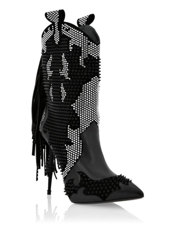 Philipp Plein Stiefel & Stiefeletten | Damen Leather Boots Lo-Heels High Cowboy Black/Black