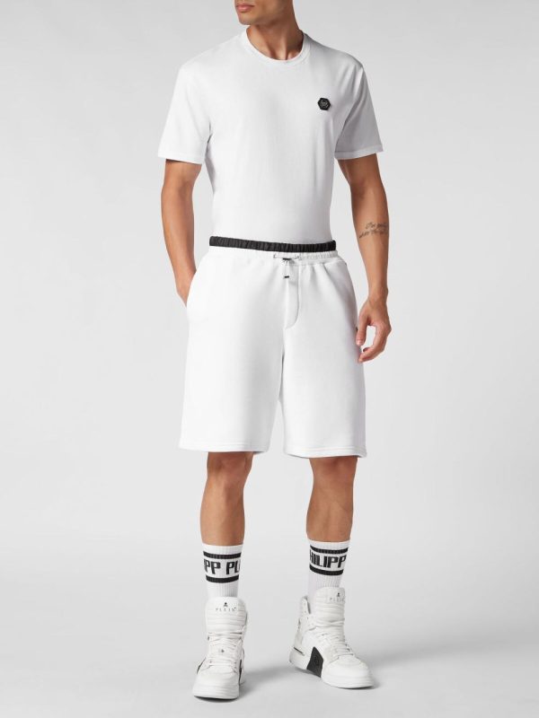 ● PP-Sechseck auf einem auf der linken Seite aufgenähten Saffianleder-Badge