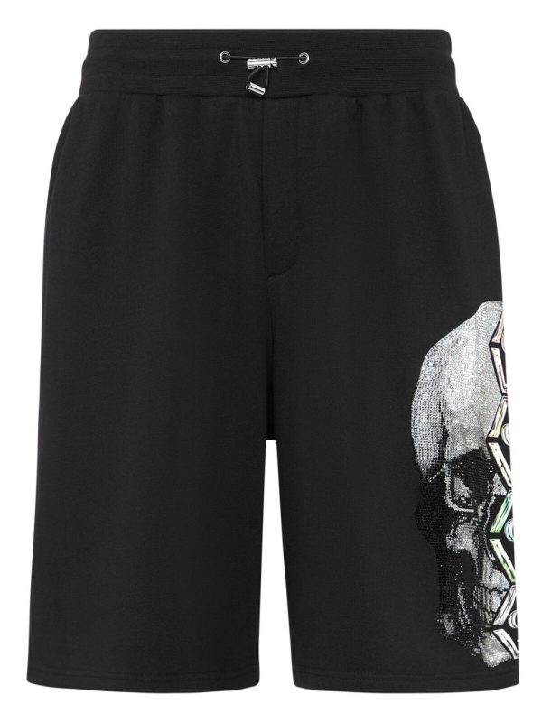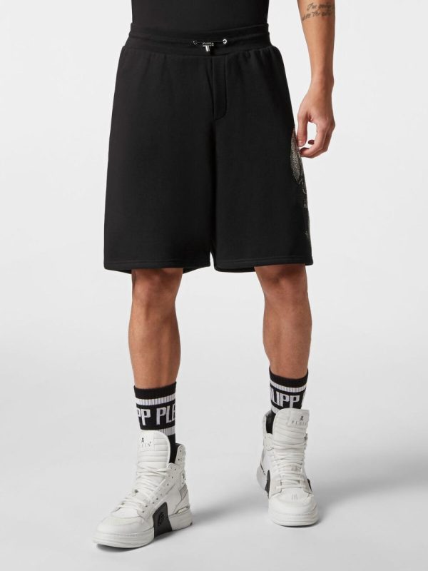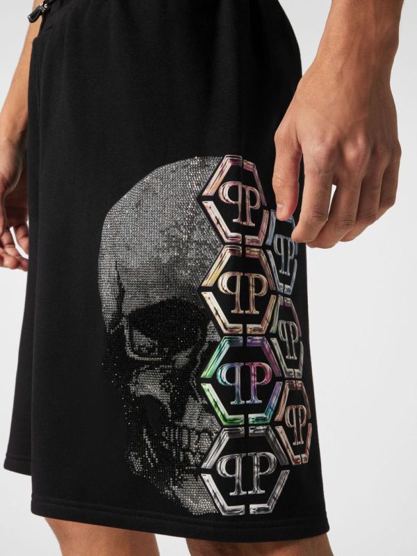 ● Strassbesetzter Totenkopf auf dem linken Bein zusammen mit Digitaldruck Marke