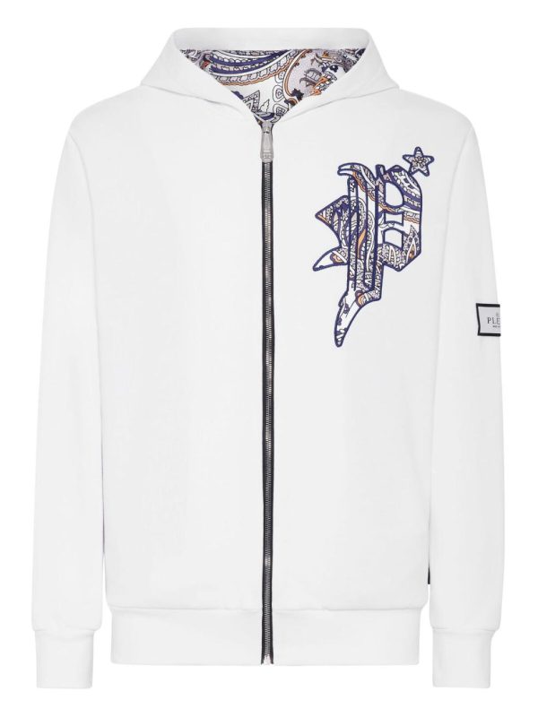 ● Kapuzenfutter mit Paisley-Print PP-Sechseck auf einem Abzeichen aus Saffianleder, das auf der Kapuze aufgenäht ist